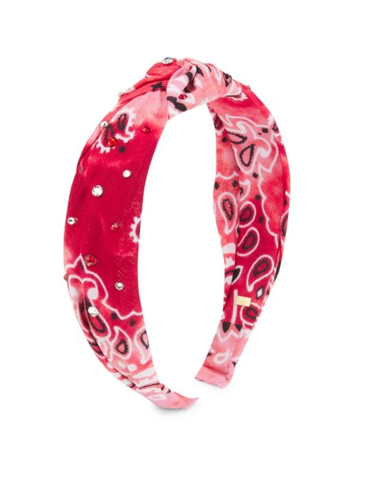 This knotted headband by Bari Lynn features a wrapped bandana design accented by shimmering Austrian crystals.