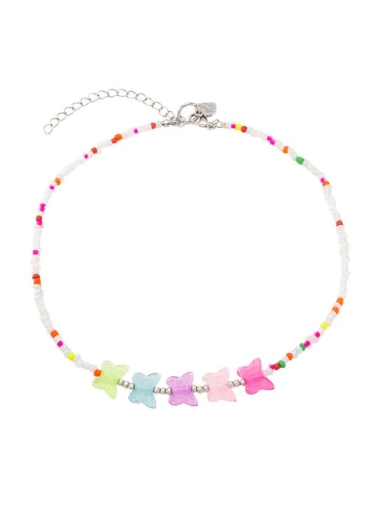 This Bari Lynn necklace features butterfly beads and fastens with a lobster clasp.