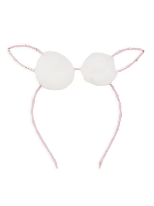 ONLY AT SAKS This headband resembles bunny ears with crystal embellishments and fur pom-poms.