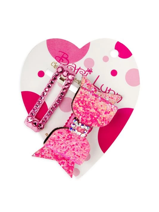 This set of hair clips includes a rectangular clip with Austrian crystals and a bow clip.