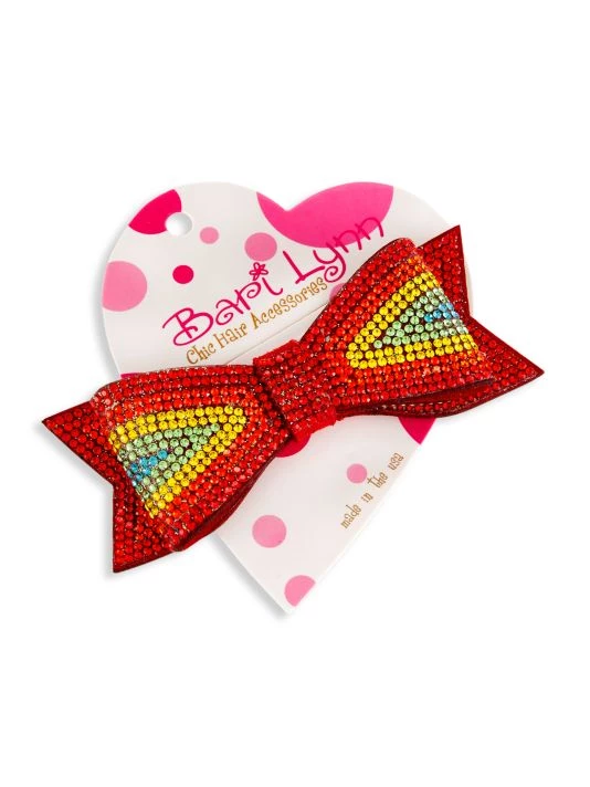 This crystal-embellished double bow features a rainbow pattern.