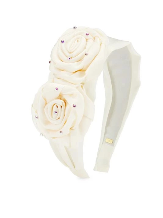 Styled with two roses on the side, this headband is embellished with delicate Austrian crystals.
