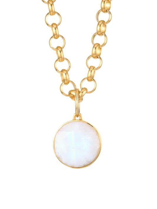 Stunning rainbow moonstone suspended from a chunky link chain.