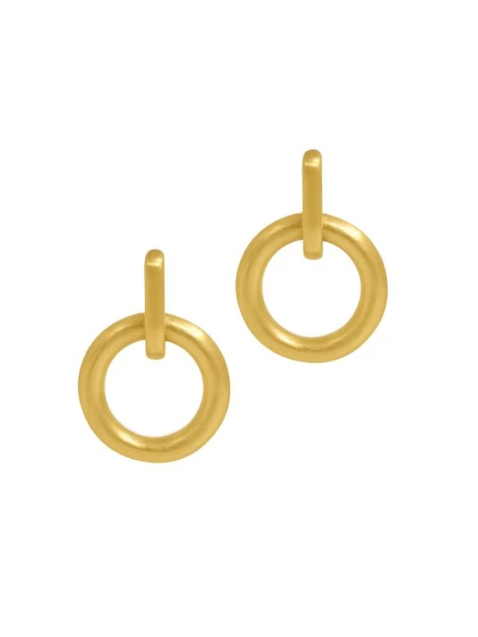 From the Dune Collection. Dean Davidson’s 22K-gold-plated drop earrings each feature a front-facing hoop suspended from an elongated stud. Completed with a brushed finish, this pair captures the award-winning jewelry designer’s modern, versatile aesthetic.