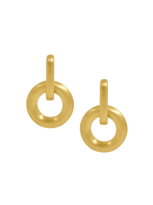 From the Dune Collection. Dean Davidson’s mini 22K-gold-plated drop earrings each feature a front-facing hoop suspended from an elongated stud. Completed with a brushed finish, this pair captures the award-winning jewelry designer’s modern, versatile aesthetic.