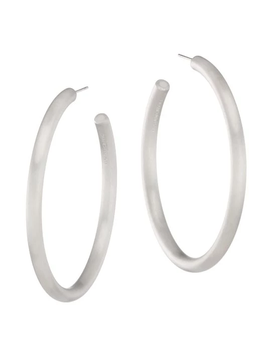 From the DD Icons Collection. These timeless rhodium-plated hoop earrings are completed with a brushed finish.