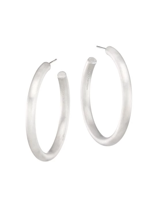 From the DD Icons Collection. These timeless rhodium-plated hoop earrings are completed with a brushed finish.