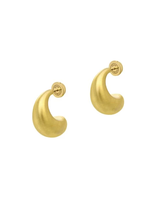 From the Origins Collection. Cast in brushed 22K gold-plated, these huggie earrings feature a unique teardrop silhouette set on posts with the label’s namesake engraved.