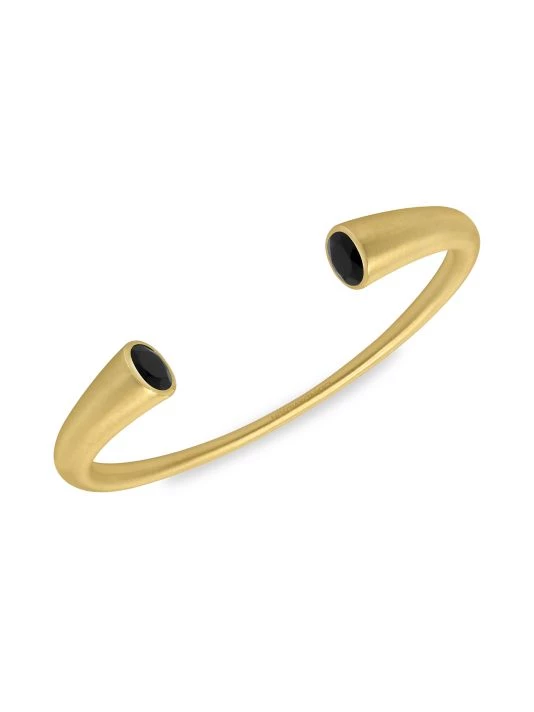 From the Signature Collection. This twin cuff is elegantly punctuated with two brilliant-cut black onyx gemstones set in brushed 22K gold.