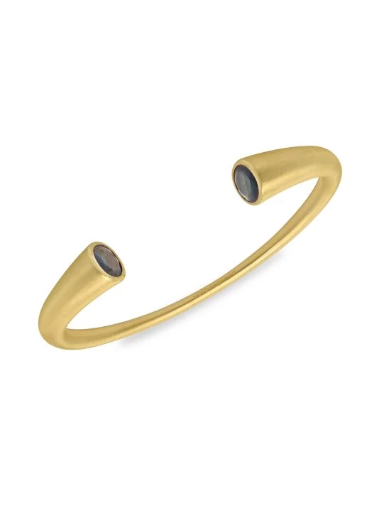 From the Signature Collection. This 22K gold cuff is elegantly punctuated with two multi-faceted, brilliant-cut labradorite gemstones.