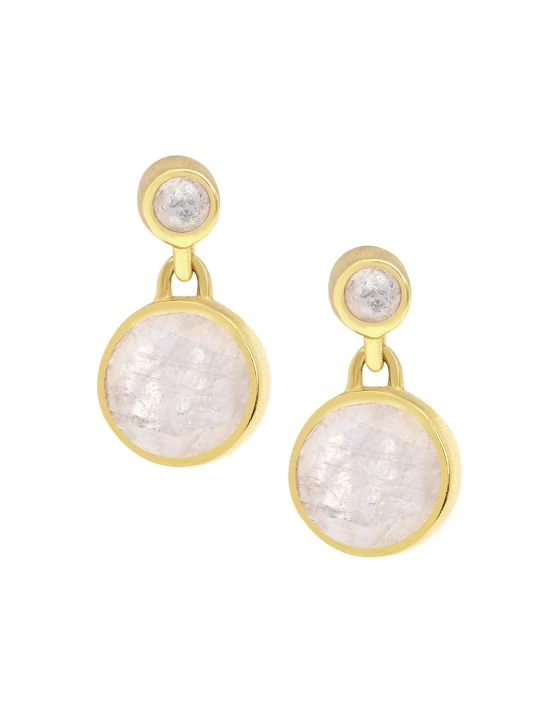 From the Signature Collection. A delicate, dangling take on the label’s best-selling studs, these droplet earrings feature brilliant-cut moonstones set in brushed 22K gold.