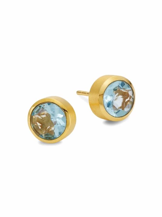From the Signature Collection. Midi knockout studs feature a multi-faceted, brilliant-cut blue topaz in a golden bezel that makes an impact for both day and night.