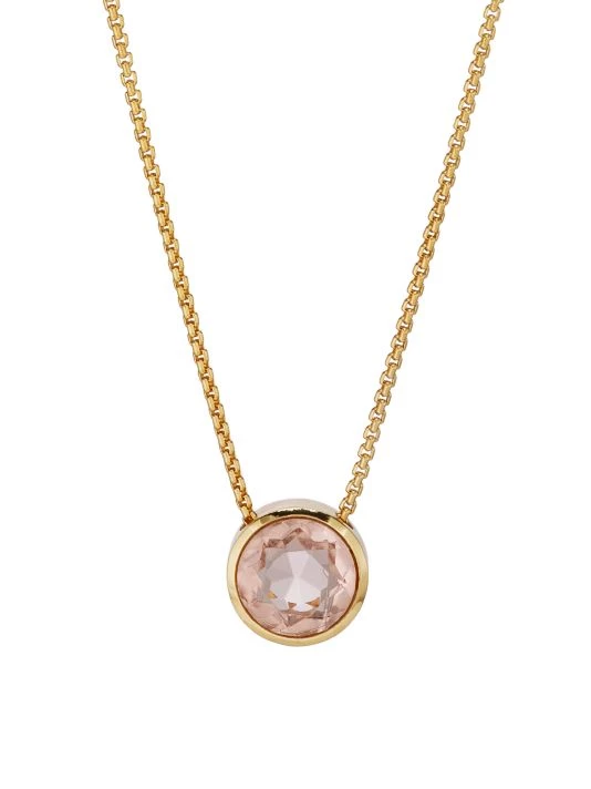 From the Signature Collection. Knockout pendant features a multi-faceted, brilliant-cut morganite in a golden bezel suspended on a fluid box chain. The silicone slide closure allows you to gently pull the chain and adjust it to your desired length.