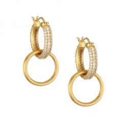 Versatile double hoop style anchored by a a base hoop with three lines of cubic zirconia.