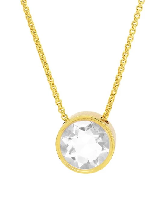 From the Signature Collection. A faceted quartz pendant is surrounded by a luminous halo and suspended from this fluid, adjustable box chain.