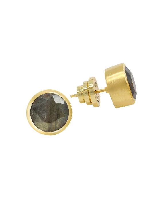From the Signature Collection. A large, statement-making stud featuring brilliant-cut labradorite gemstones set in brushed 22K gold.